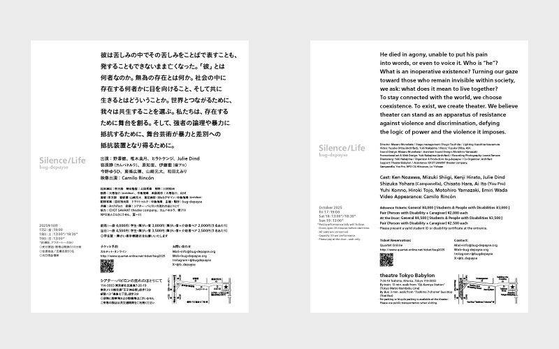 新作公演『Silence/Life』フライヤービジュアル&特設ページ公開!